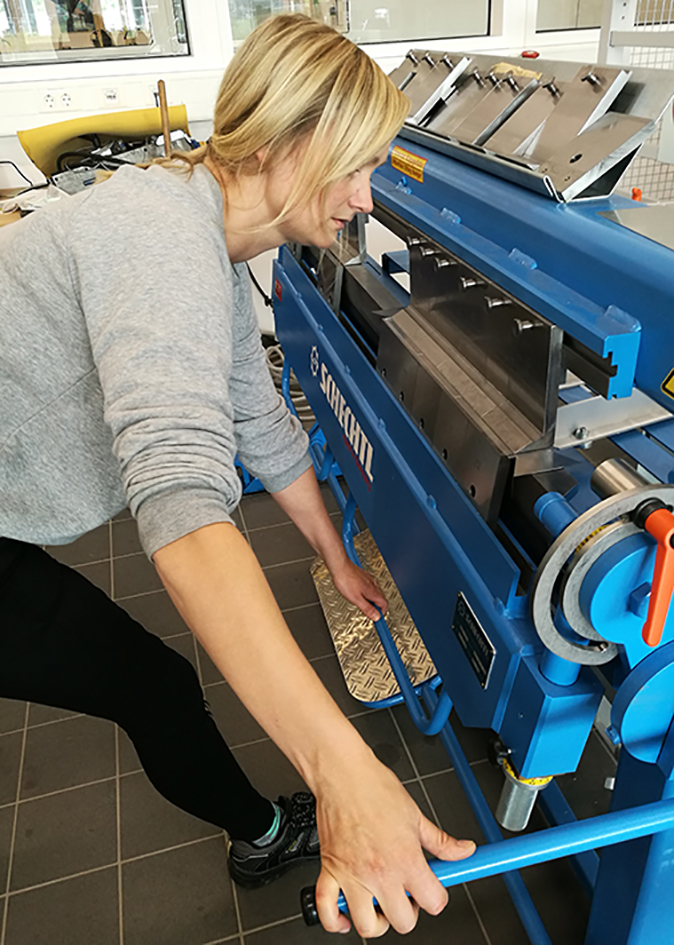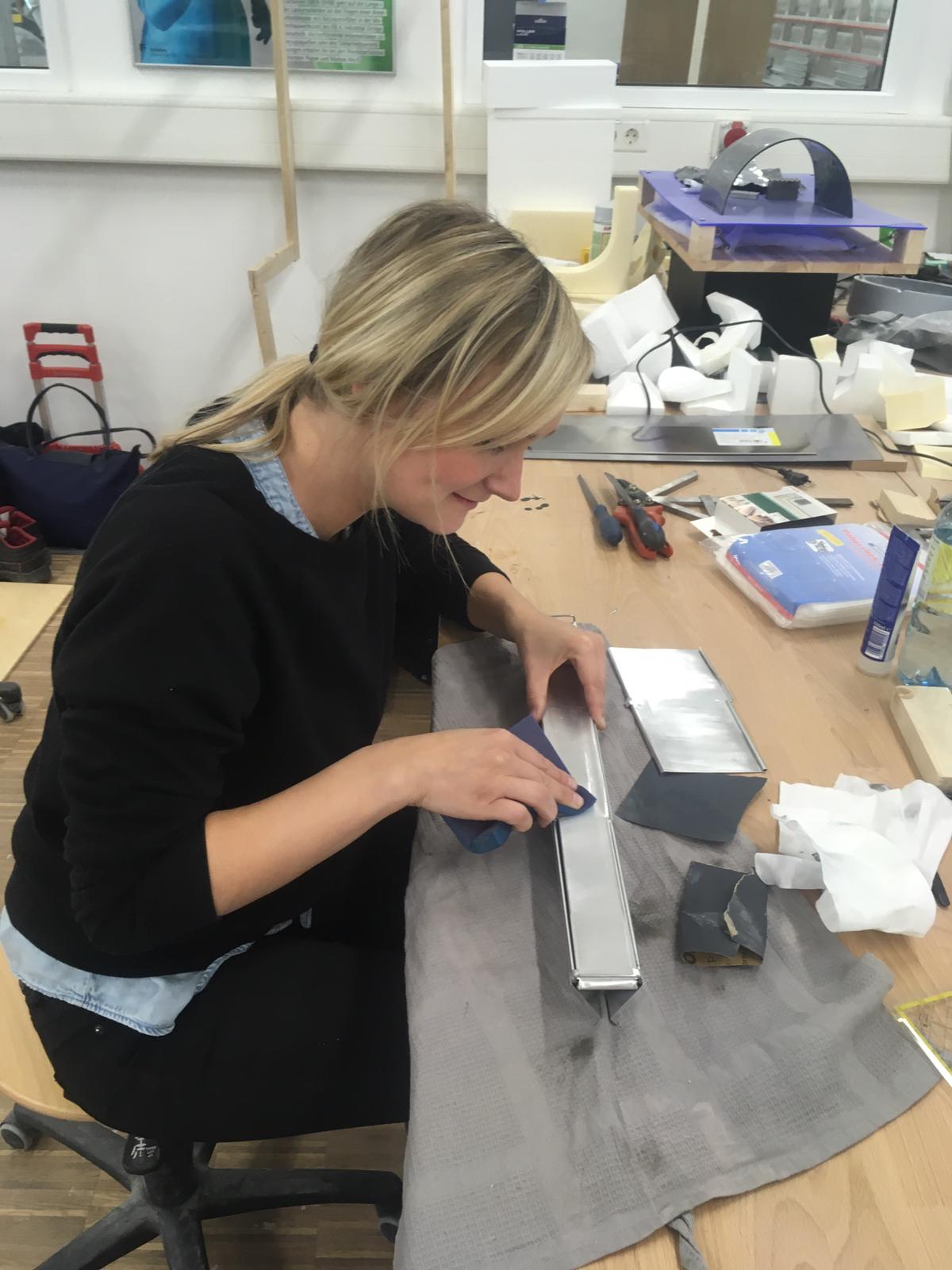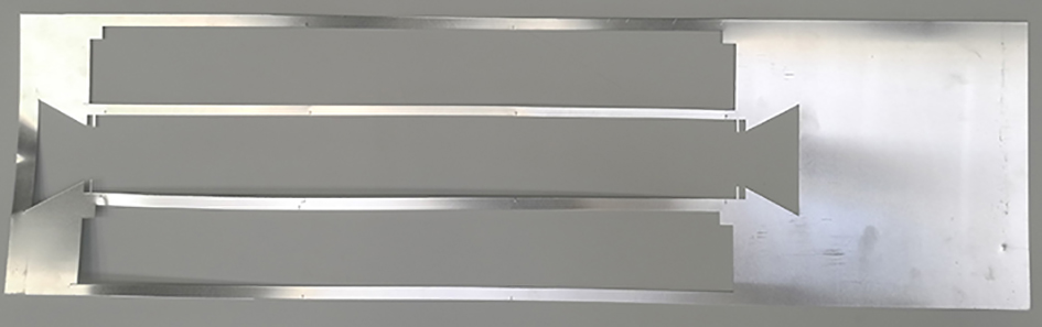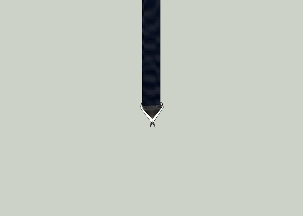 BELT consists of only three laser-cut aluminium sheets (0.8 mm, untreated) that have been bent into an oversized hinge. A thin guide wire holds all parts together, provides the tension (flap position) and also serves as a loop for suspension over the webbing.