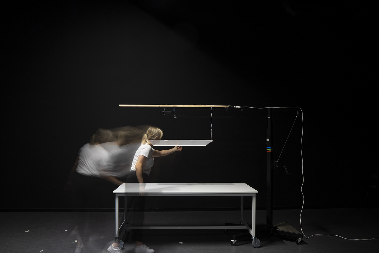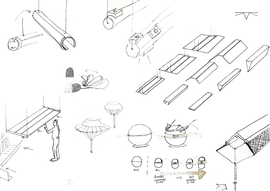 BELT is a lighting tool in form of a decorative pendant luminaire that facilitates various usage scenarios at a dining table (e.g. dinner or work). Since there is not always a need for global light or dimming on the whole surface of a table BELT defines precise zones of light and darkness through two manually and continuously movable flaps. Thus BELT enhances a more conscious usage of light and the sensibility of its perception by celebrating the aesthetics of darkness.